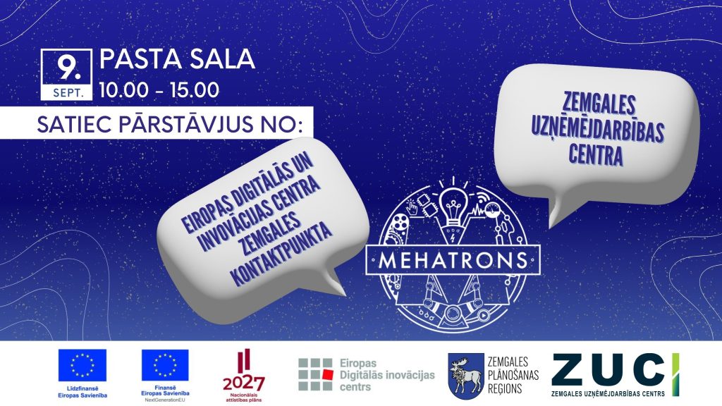 Ar daudzveidīgu programmu 9. septembrī, Jelgavā, Pasta salā notiks tradicionālais tehnikas un inovāciju festivāls “Mehatrons”, kas bezmaksas aktivitātēs popularizēs inženierzinātņu, metālapstrādes un mašīnbūves nozari, kā arī tehnisko jaunradi. Starp dalībniekiem apmeklētāji varēs sastapt arī Zemgales uzņēmējdarbības centra un EDIC Zemgale kontaktpunkta pārstāvjus.