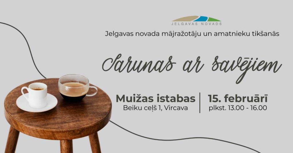Jelgavas novada mājražotāji un amatniekiaicināti piedalīties kopā sanākšanas pasākumā "Sarunas ar savējiem" Muižas istabās (Beiku ceļš 1, Vircava, Vircavas pagasts) 15. februārī no plkst. 13.00 līdz 16.00.
