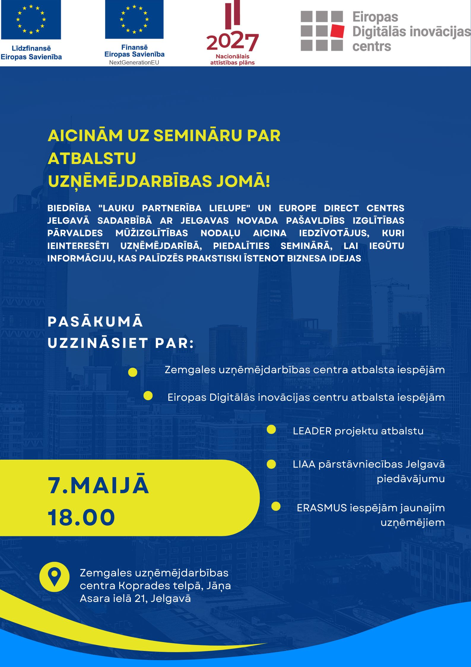 Ar mērķi veicināt Latvijas lauku reģionu digitālo attīstību, Zemgales plānošanas reģiona (ZPR), Zemkopības ministrijas, Lauku atbalsta dienesta un Zemgales Uzņēmējdarbības centra pārstāvji no 28. līdz 30. maijam devās uz Santanderu (Santander) […]