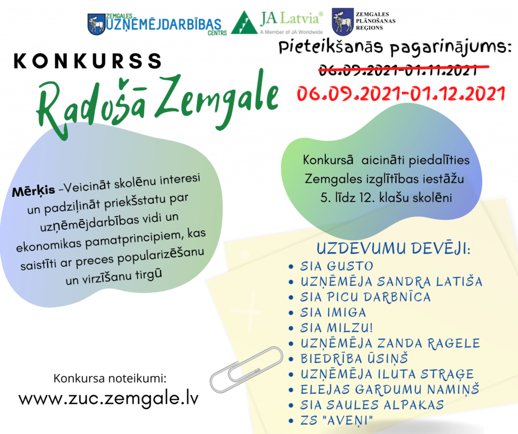 Zemgales reģiona skolēnu reklāmas konkurss “Radošā Zemgale” 2021 pieteikšanās līdz 01.12.2021