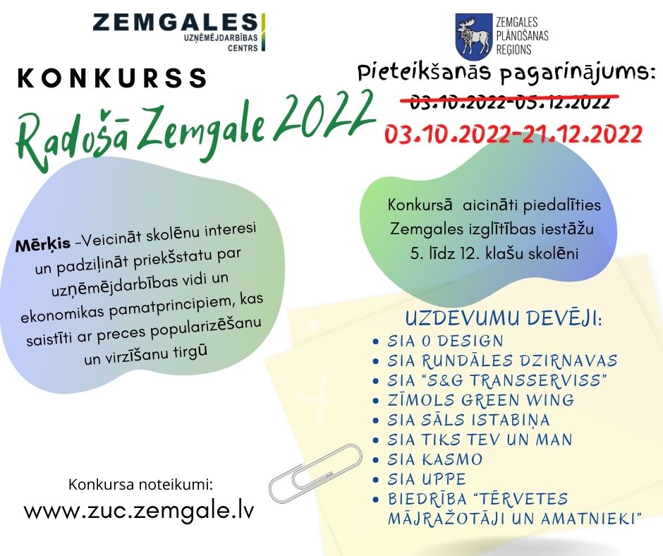 Noslēdzies jau otrais konkurss “Radošā Zemgale”, ko organizē Zemgales uzņēmējdarbības centrs sadarbībā ar Zemgales pašvaldībām, izglītības iestādēm un reģiona uzņēmējiem – konkursa uzdevumu devējiem.